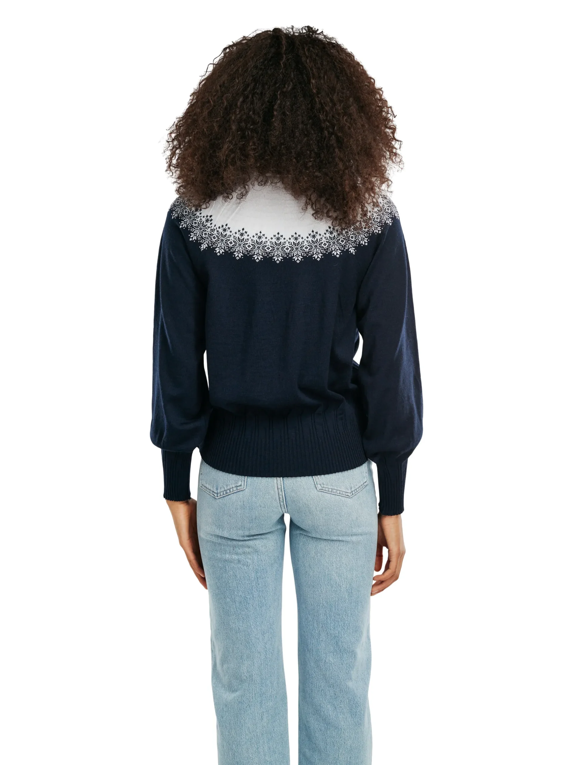 Isfrid Is A Light Knit Merino Wool Sweater With The Optical Illusion Of A Yoke Knit In A Raglan Sleeve Construction. This Cocoon Shaped Sweater Features A High Neck, Slightly Roomy Sleeves And Generous, Asymmetric Rib Knit In Hemline, Cuffs, And Neck. The Snow Crystal Pattern Gives A Hint, This Is A Sweater Equally Fit For Apres Ski And City Streets.