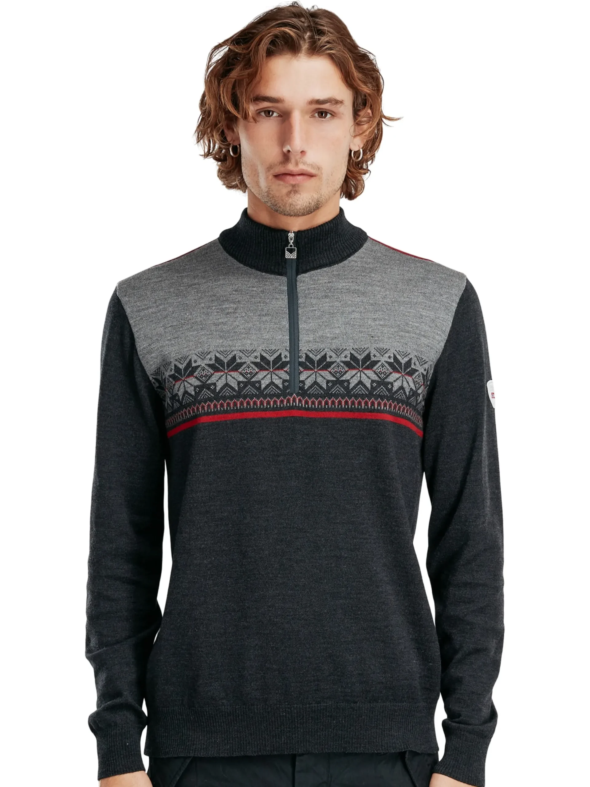 A Sporty, Lightweight And Soft Merino Wool Sweater With Block Colors And Pattern With The Classic Eight-Petal Rose. The Sweater Has A Medium High Neck With A Zipper And Can Be Worn Both For Leisure And Sports.