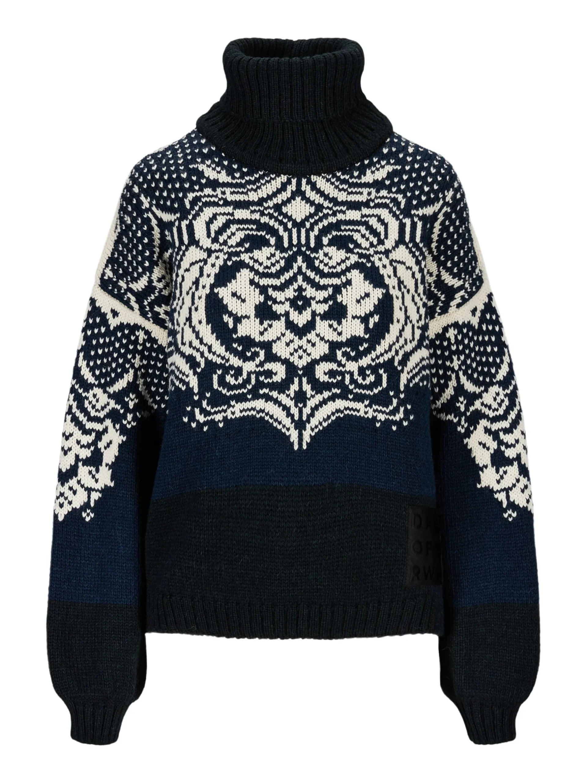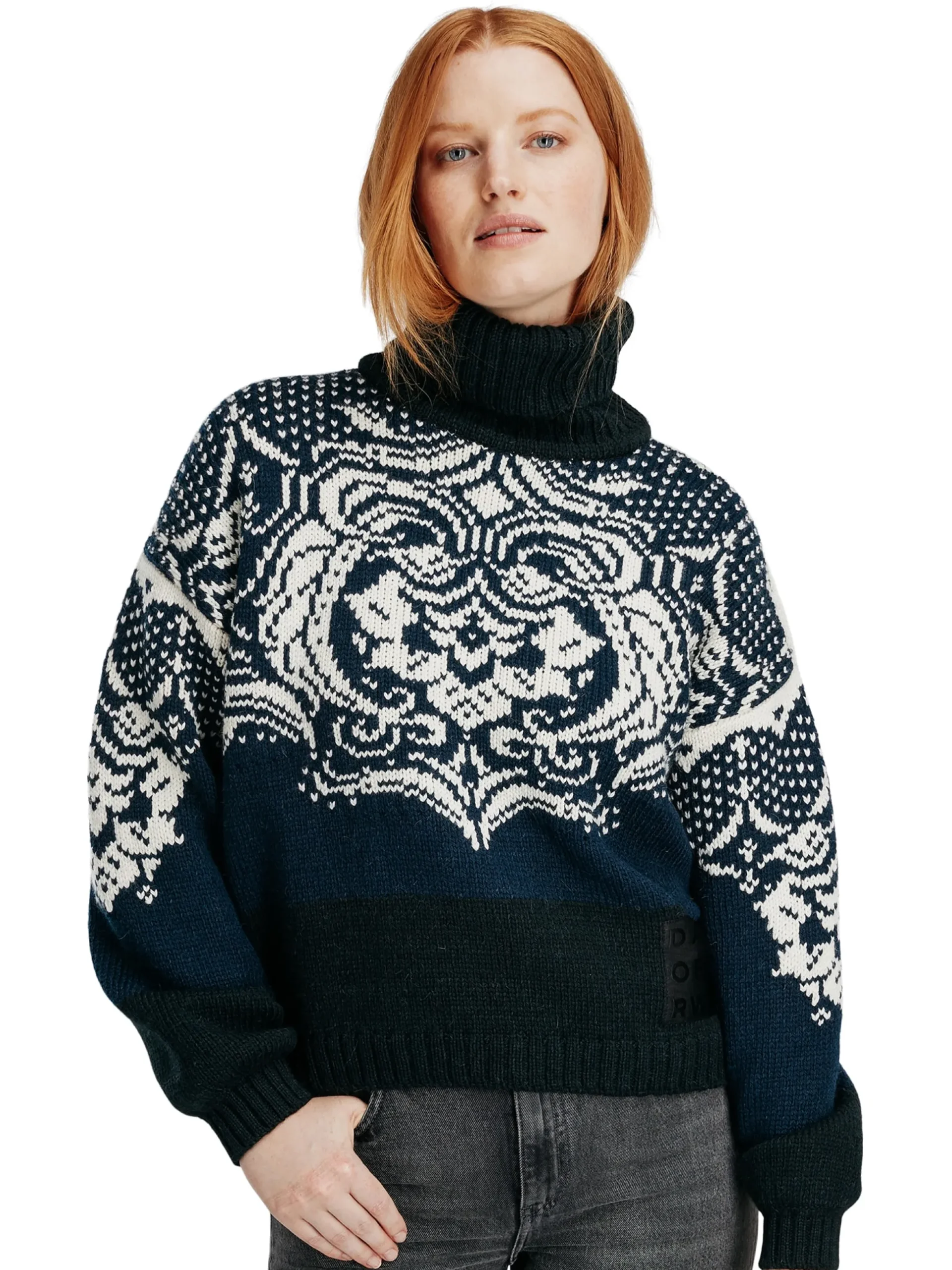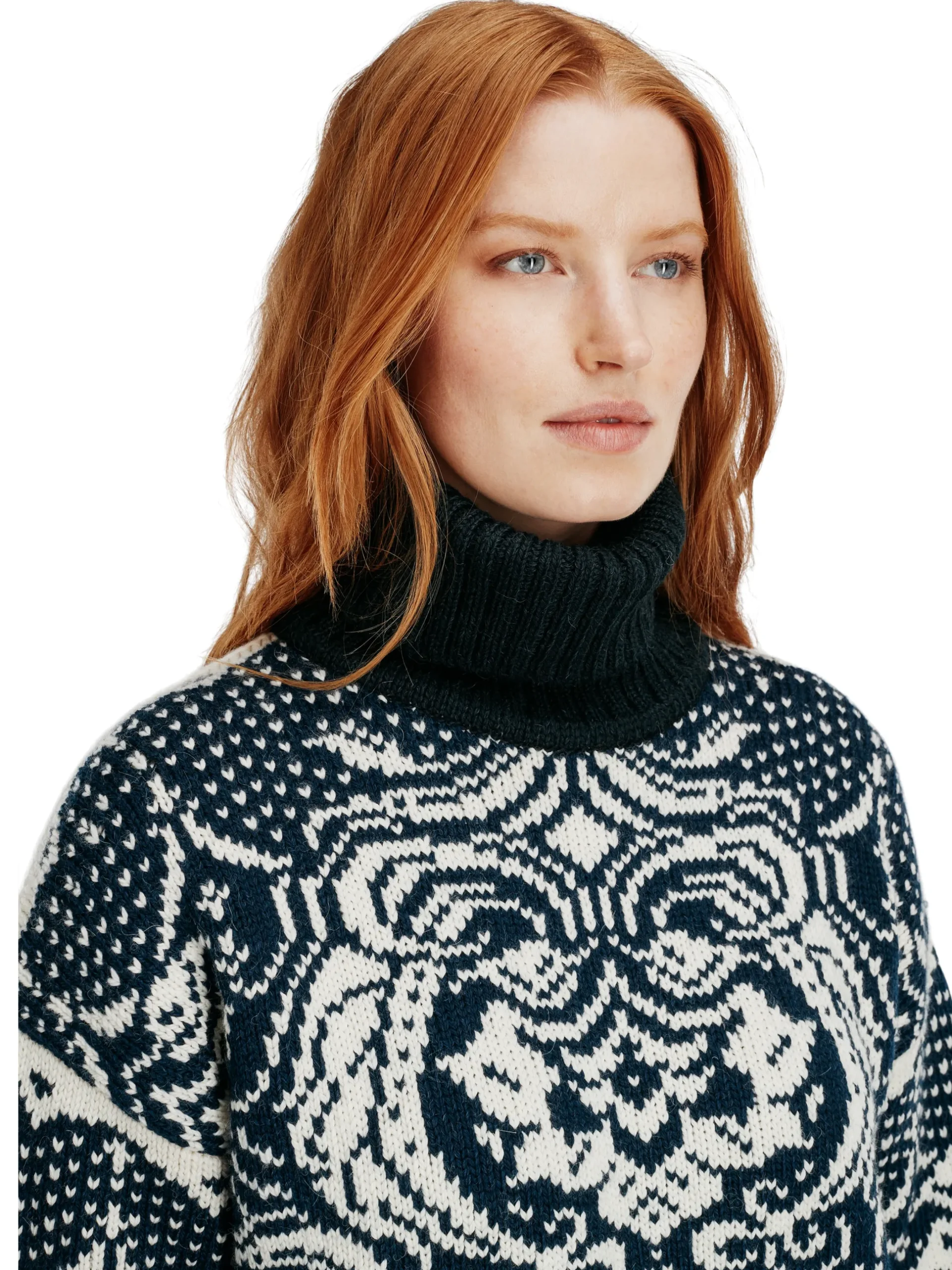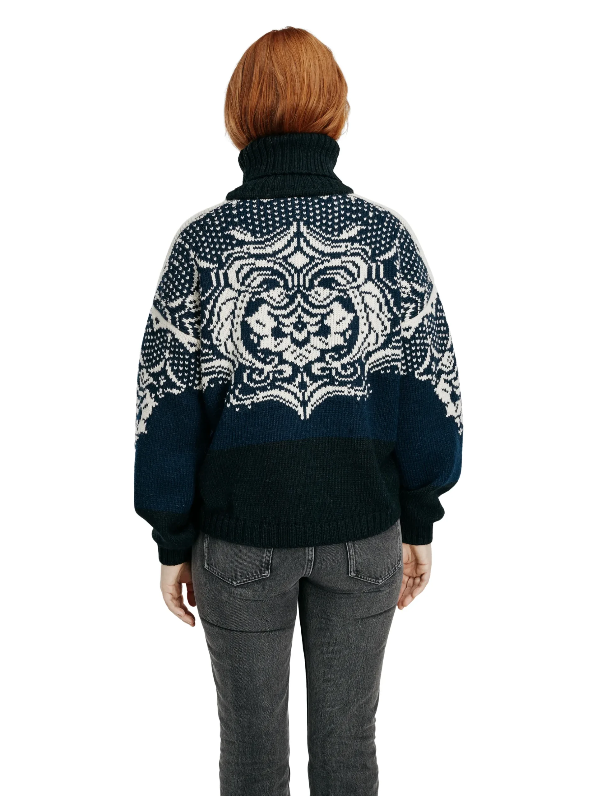Blomdalen Is A Tactile And Luxurious Sweater, Knitted With Loosely Spun Yarn In A 50/50 Blend Of Alpaca And Wool. The Floral Pattern Is Based On Old Traditional Dale Patterns. The Sweater Has A Soft, Wide Fit With A High Rib Neck, And Is Finished With Voluminous Balloon-Shaped Sleeves.