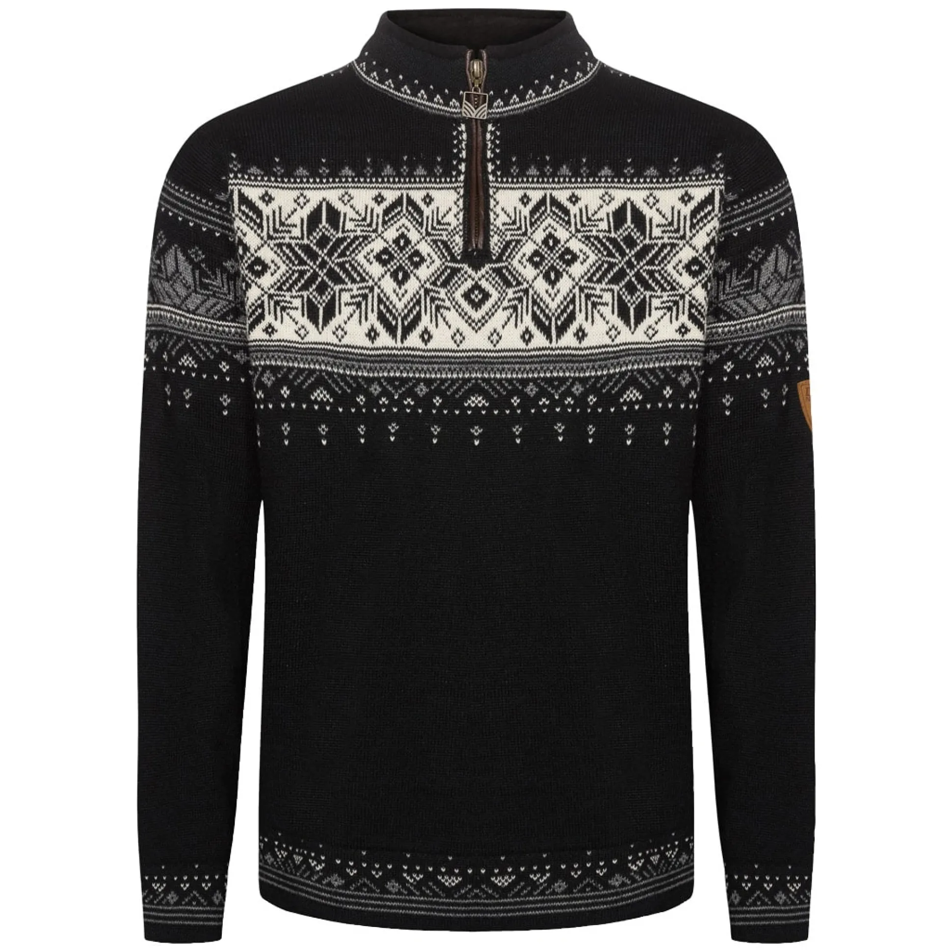 A Timeless Unisex Sweater Inspired By Traditional Norwegian Patterns, With Elk Leather Trim Along The Zipper. Made With 100% Lightweight Wool.