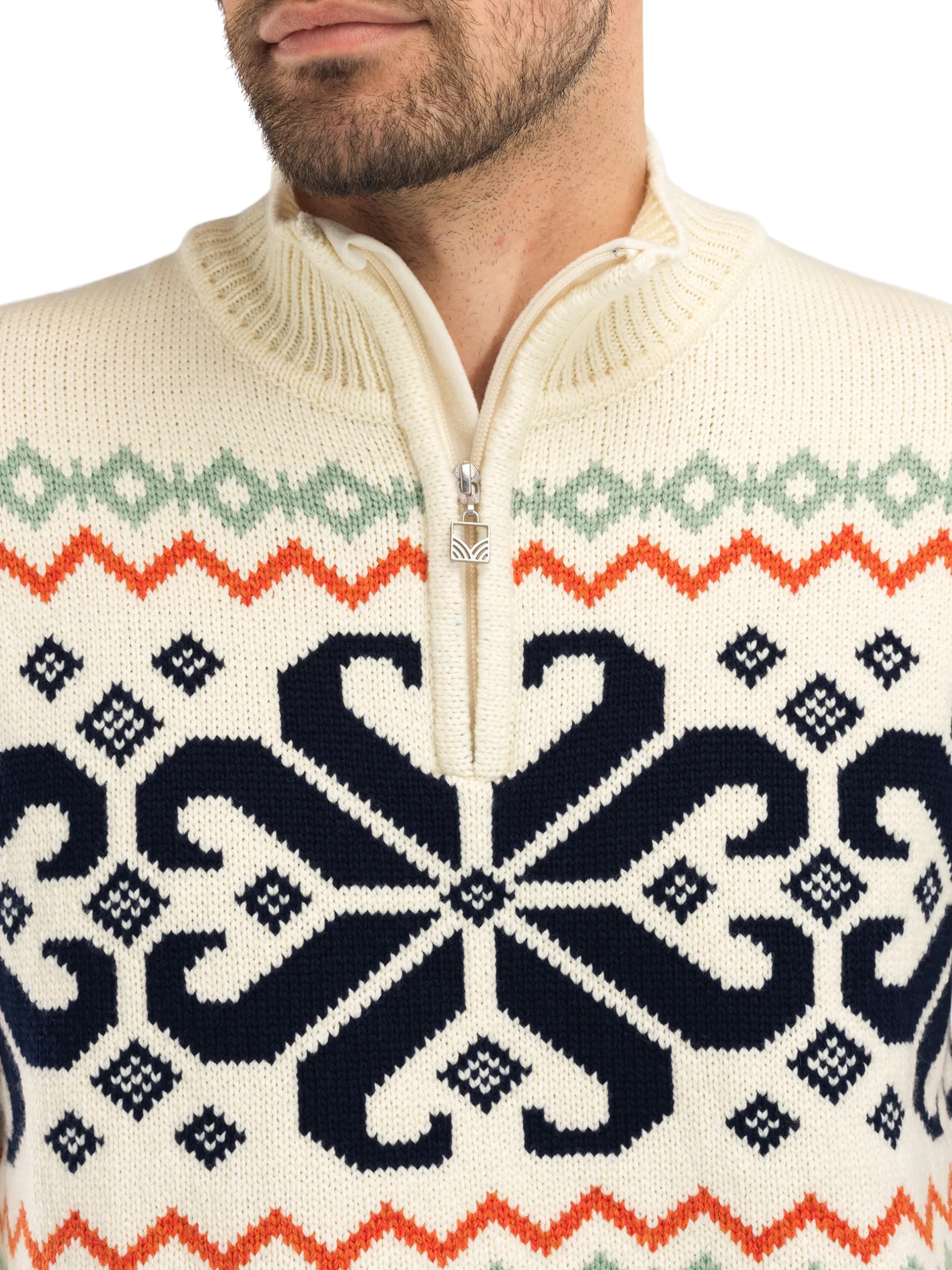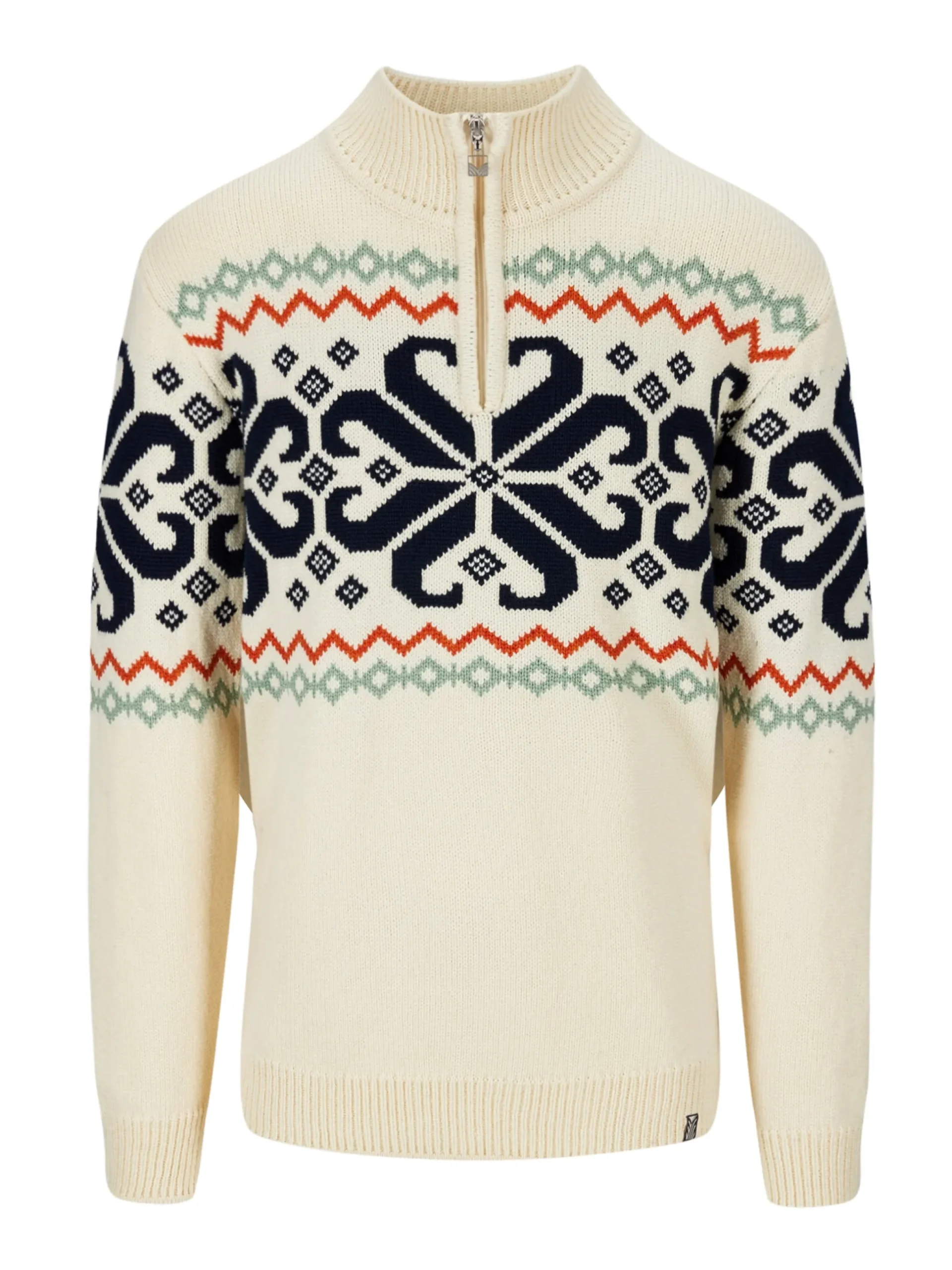 A Sporty Wool Sweater With A High Neck And Zipper. The Pattern Is From Our Official Olympic Sweater From 1984. The Sweater Is Knitted In Soft Merino Wool, With Ribbed Neck, Sleeves And Hem. The Falkeberg Can Be Worn Both As A Ski Sweater And As A Casual Sweater.