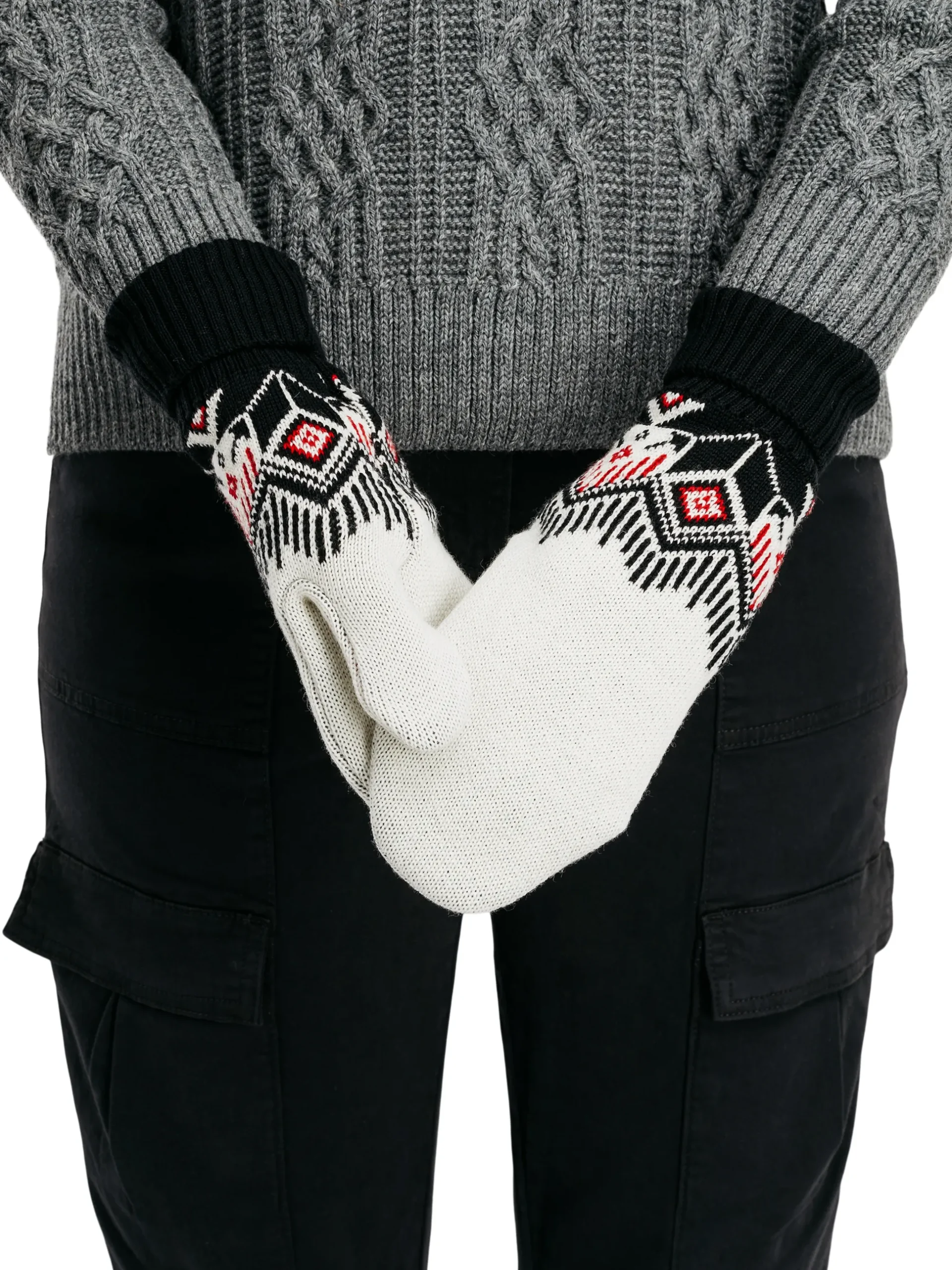 Water Repellent Merino Wool Mittens With Enlarged And Simplified Pattern Featuring The Classic Norwegian Eight-Petal Rose. There’s A Note Of The 50S And The 60S In The Mittens’ Bold Pattern. Made With 100% Skin Soft Merino Wool.