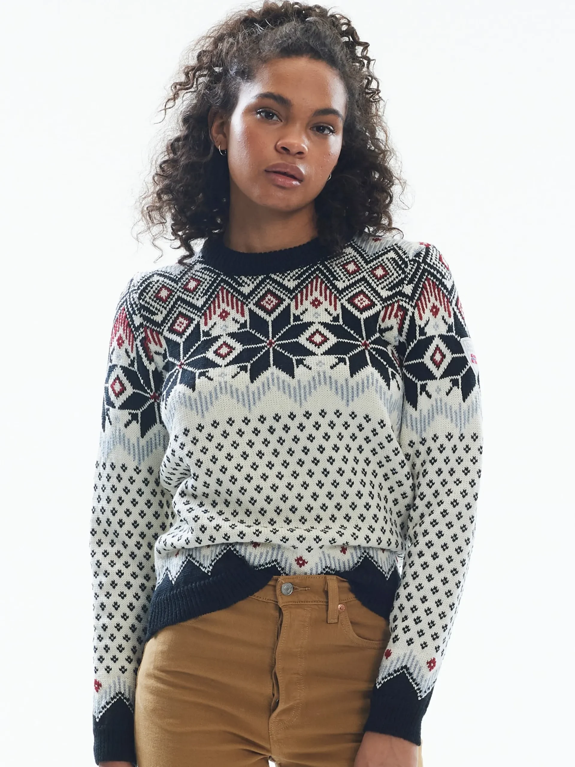 There Is A Note Of Both The 50S And The 60S In The Vilja Sweater. The Design Elements Are Amplified, Featuring The Classic Norwegian Eight-Petal Rose, The Cross Known From The Setesdal And Cortina Pattern, And The Lice Pattern. Knitted In 100% Lightweight Wool.